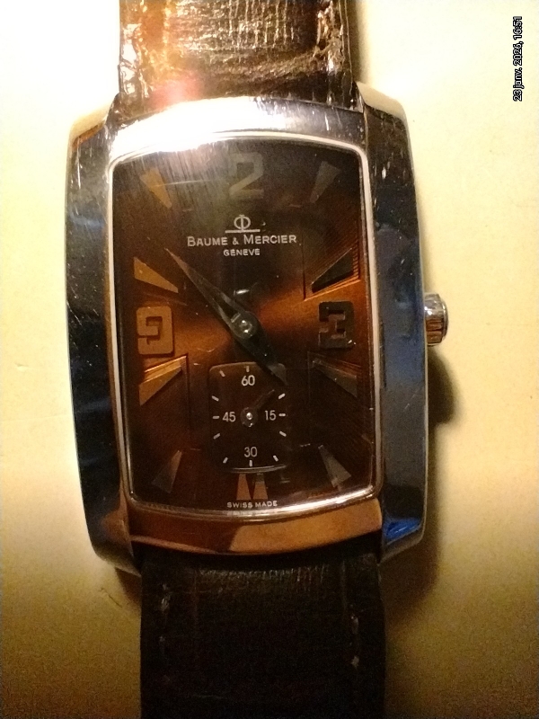 Forget, automatique, jour date, certifié chronomètre, diamètre 38 mm. Etat proche du neuf. Sans boite papier.