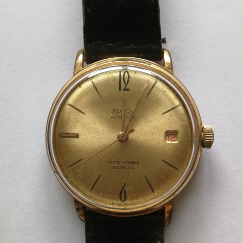 Rideau, mécanique manuelle, années 60, diamètre hors couronne 34 mm, plaquée or.