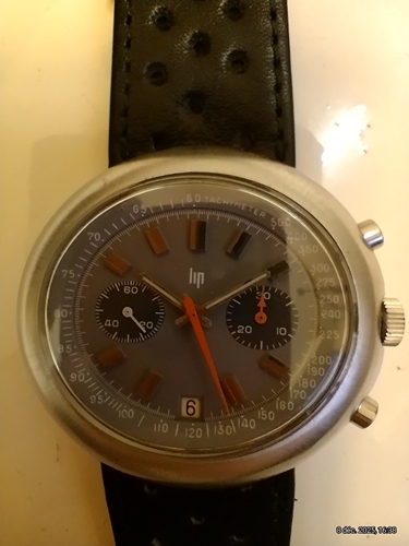 Lip, chronographe mécanique, mouvement Valjoux 7734, 48 x 44 mm. Sans boite papier.